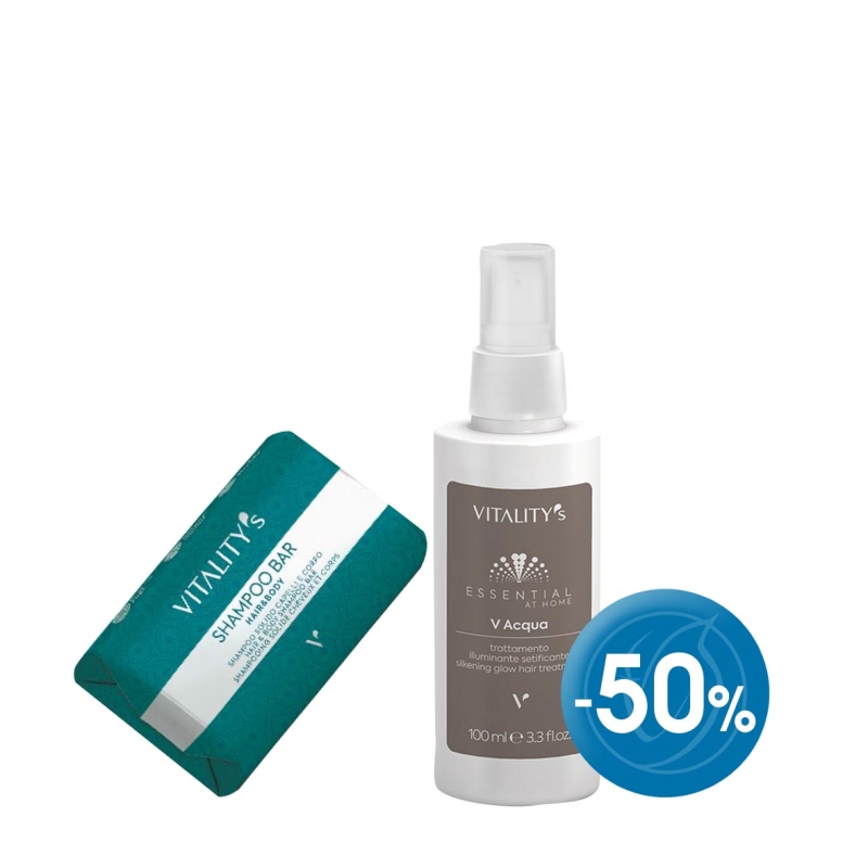 -50% 15023 V Acqua Терапия за блясък и мекота: Терапия с моментален ефект за лека, гладка, дисциплинирана и копринено сияйна коса. Леката му формула я овлажнява и подхранва, без да я утежнява. Морски микроелементи реминерализират, а комплекс от бяла ливадна пяна възстановява кутикулата на косъма, придава му блясък и плътност.