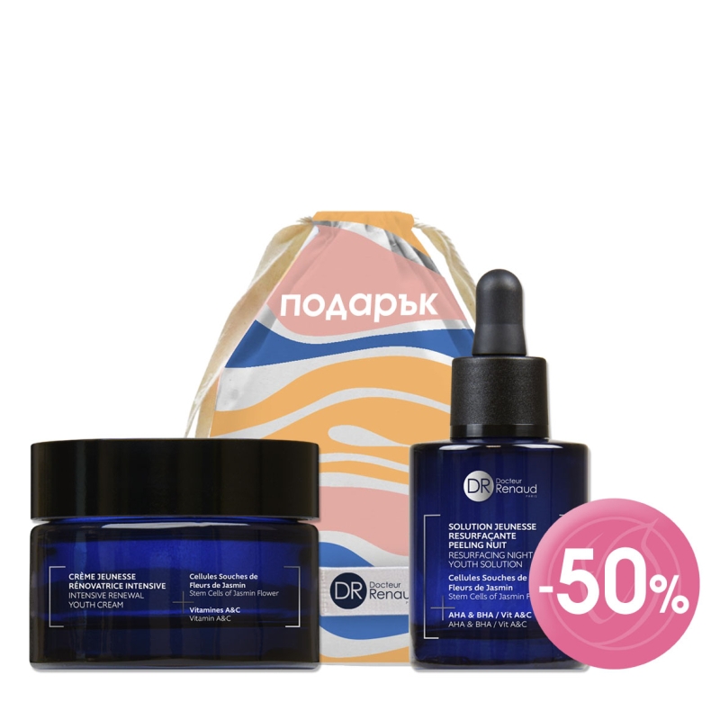 -50% VDR1102 Нощен обновяващ и подмладяващ разтвор жасмин: Подмладяващ концентрат за интензивно регенериране на кожата през нощта. Защитава от свободните радикали, стимулира клетъчното регенериране и подобрява тонуса на кожата. Екстракт от стволови клетки от цветове на жасмин защитава клетъчното ДНК, укрепва твърдостта и еластичността на кожата. Комбинация от алфахидрокси киселини (гликолова и млечна) и бетахидрокси салицилова киселина стимулира клетъчното обновяване и елиминира мъртвите клетки. Витамин А стимулира регенерацията на епидермиса, а витамин С стимулира производството на колаген и изравнява тена. Патентован фитокислороден комплекс стимулира синтеза на ендорфини в кожата и подобрява клетъчното дишане за свежа, гладка и сияйна кожа.