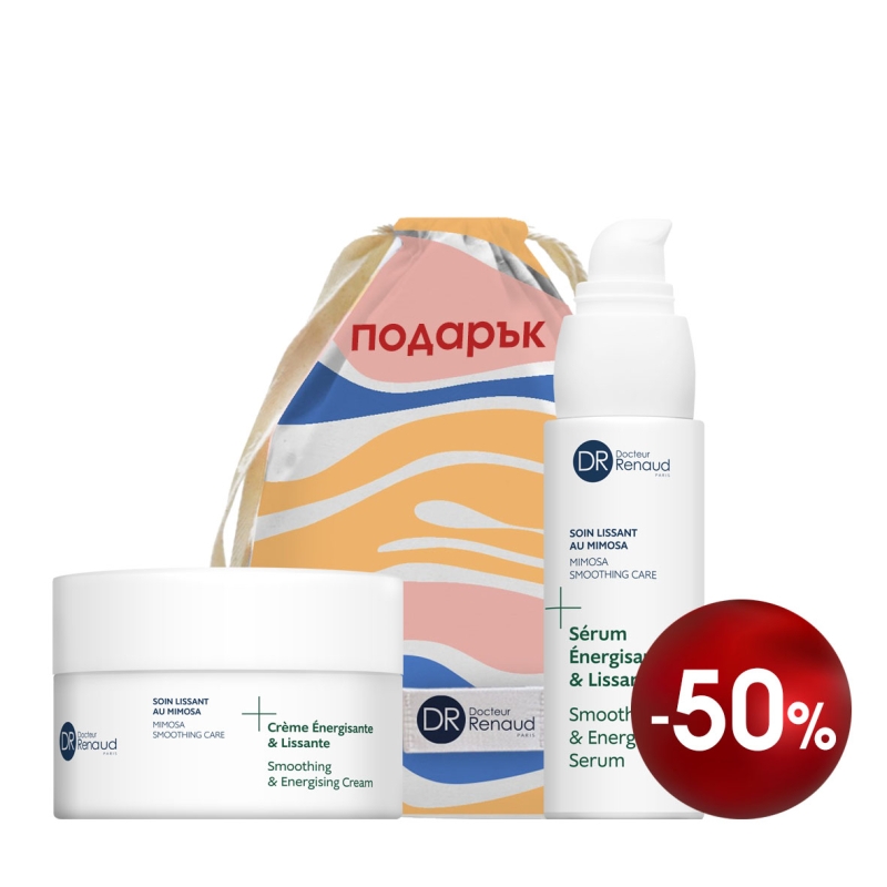 -50% VDR0840 Изглаждащ и енергизиращ серум мимоза: Серумът съживява, изглажда, възстановява и защитава кожата. Екстракт от органична мимоза (богат на флавоноиди), POLLUSTOP® (полизахариден защитен филм) и танини от перуанския храст тара защитават кожните клетки от разрушителното действие на свободните радикали, замърсената околна среда и вредните лъчения. Богат енергизиращ и хидратиращ коктейл (хиалуронова киселина, екстракти от тамаринд и слънчоглед, вакса и кора от мимоза) стимулира клетъчната регенерация, възстановява блясъка и жизнеността на кожата. Фитокислородният комплекс® стимулира синтеза на ендорфини в кожата и подобрява клетъчното дишане за свежа, гладка и сияйна кожа.