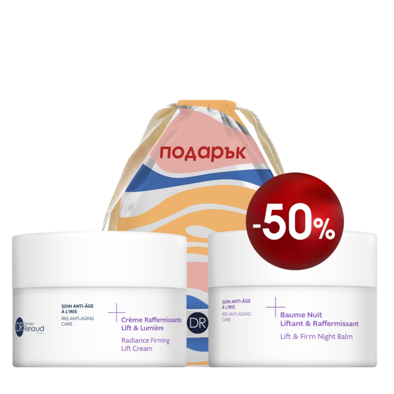 -50% VDR0081 Лифтинг и стягащ нощен балсам ирис: Комфортен и богат мултифункционален крем, който подхранва, стяга, тонизира, изглажда, придава плътност, еластичност и сияйност на кожата. Подходящ е за жени над 35 годишна възраст, за нормална и суха кожа. Екстракти от органичен ирис, хибискус и баобаб, ирисови полифеноли и захари от овес стимулират синтеза на протеини, регенерират, стягат и осигуряват незабавен лифтинг ефект. Екстракт от тамаринд, хиалуронова киселина, масло от карите, растителен глицерин и коктейл от растителни вакси (мимоза, жожоба и слънчоглед) дълготрайно хидратират, подхранват, придават еластичност и ефект „втора кожа“. Витамин В3, екстракт от цвят ванилия и сафлорово масло регулират производството на меланин и изравняват тена. Фитокислородният комплекс® и витамин Е защитават, увеличават притока на кислород, успокояват и придават сияйност на кожата. 92% натурални съставки.