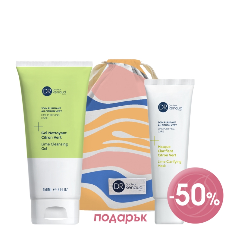 -50% VDR0539 Почистваща маска лайм: Свежа цитрусова маска, която почиства кожата в дълбочина, абсорбира замърсяванията, дълготрайно себорегулира, матира, избистря тена, има антикомедонно действие, стяга порите и съдейства за заличаване на белезите. Зелената и бялата глина абсорбират излишния себум, детоксикират и избистрят тена. Екстрактите от органичен лайм, грейпфрут, енантия хлоранта и хамамелис имат себорегулиращо, стягащо и матиращо действие, намаляват несъвършенствата, матират и свиват порите. Маслата от кайсиеви ядки, сусам и гроздови семки регенерират, предпазват от изсушаване и омекотяват кожата. Екстрактът от куркума действа противовъзпалително и антиоксидантно. Фитокислородният комплекс® стимулира отделянето на ендорфини и увеличава притока на кислород в клетките за гладка и сияйна кожа.